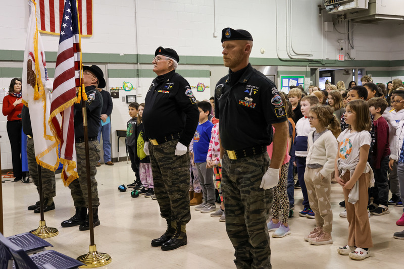 The Illinois Amvets presented Principal, Wendy Conaway, with an American flag and an Illinois Flag to display permanently inside the school. The Black Tigers Honor Guard wow'd the students as they presented the colors.